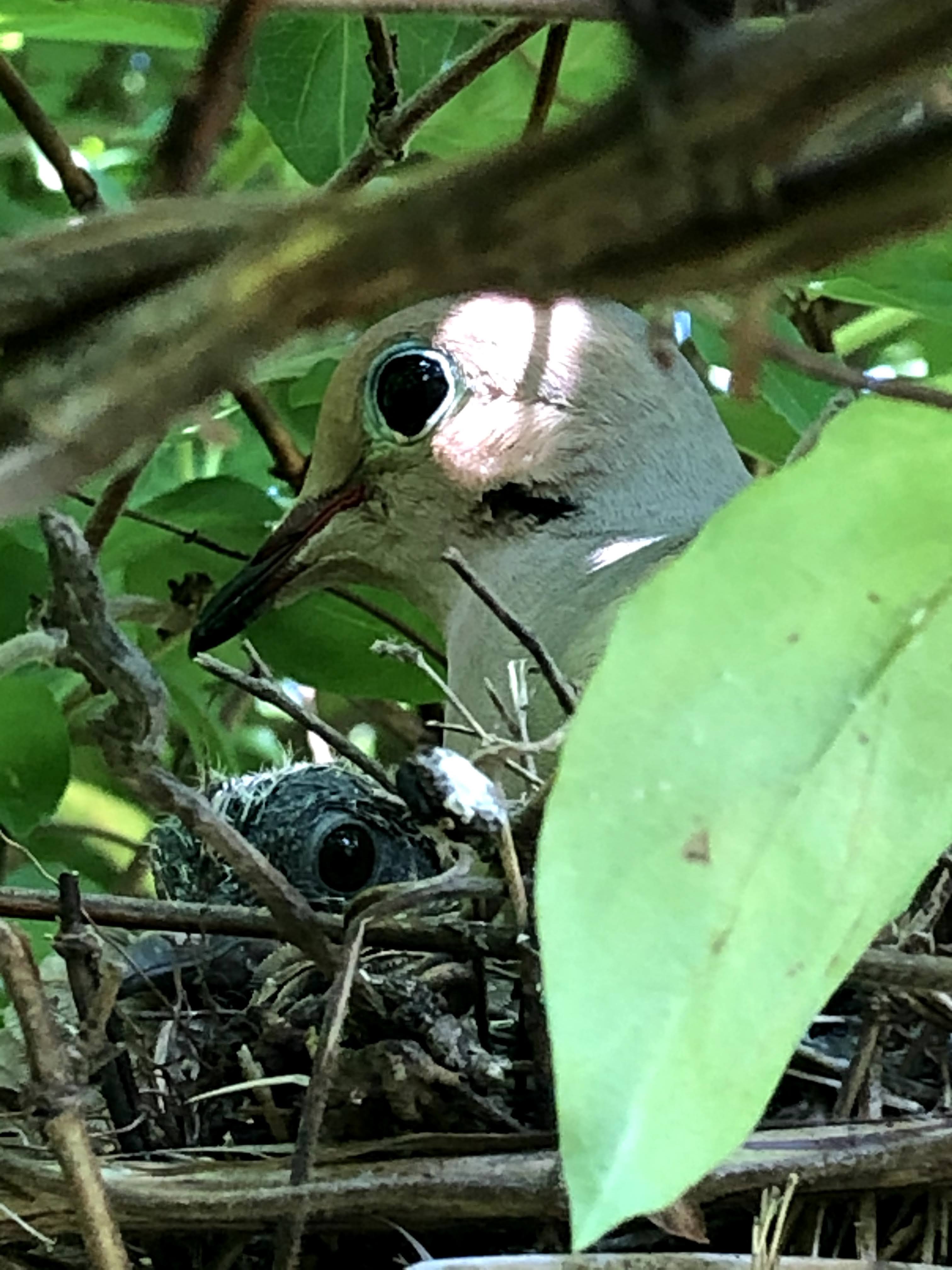 Here are a few more pictures I’ve taken recently: Mama Dove’s little baby is so cute. The moon was big and bright last night, morning sun shining through Elderberry. Hibiscus, Rose and Hydrangea are from my mother-in-law’s garden, and Fern (my favorite plant) is from a walk I took with my husband and dogs along the Greenline.