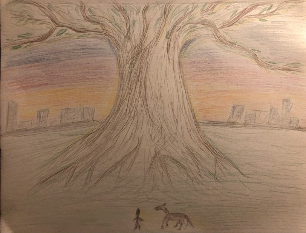 Last night I dreamt of a giant tree, it was enormous – the trunk was thick and branches full of leaves, outstretched to the sky. The tree was across a blurry, busy street and there was a large field in front of it. In the dream, I walked through the open field towards the tree, I could hear people bustling behind me. Suddenly a horse was walking next to me. I never reached the tree, only kept walking towards it. The image is stuck in my mind.