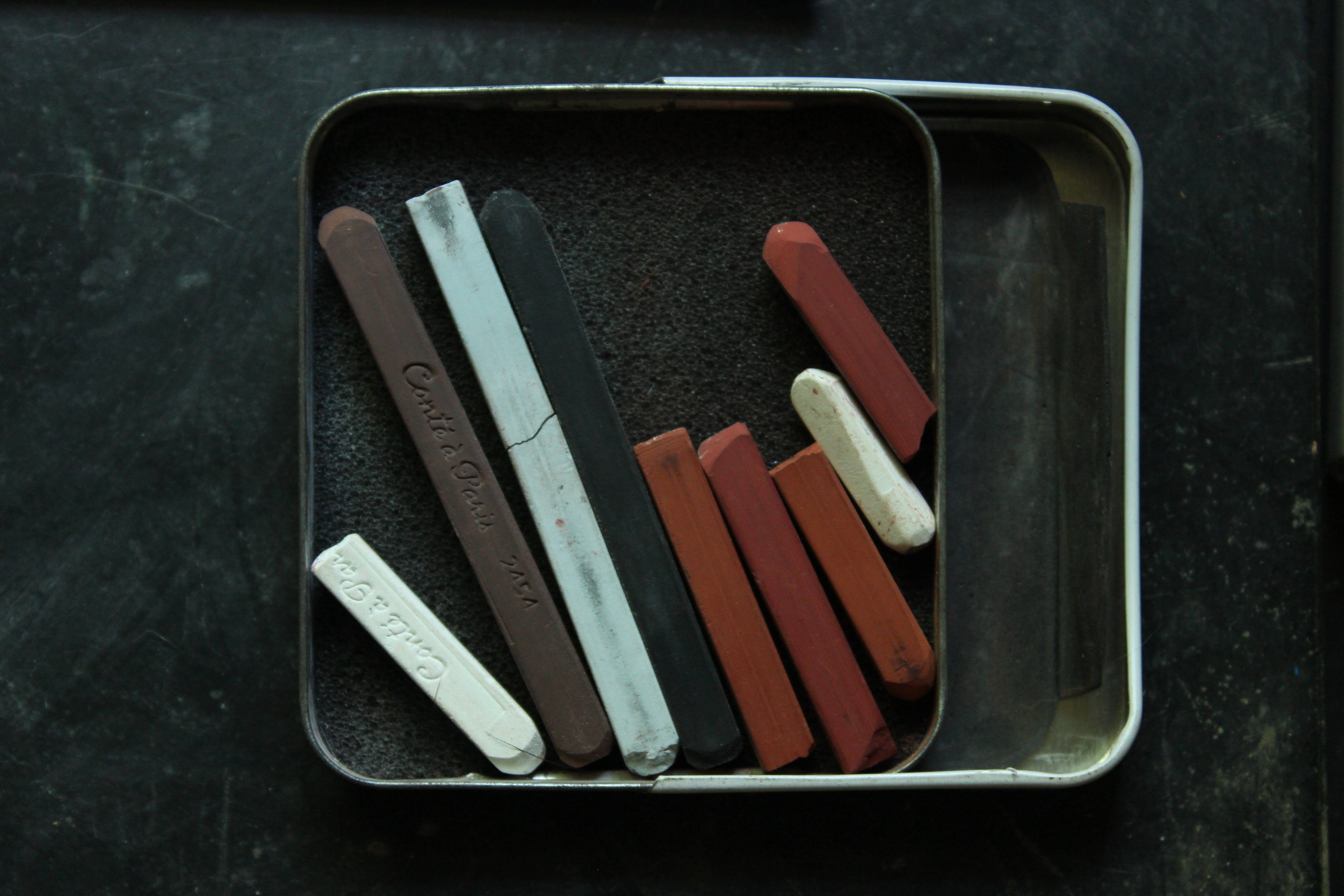 The conte crayon and paints are old too but still good. I actually didn’t have a paint brush, so I used a washed feather – I have so many collected from when we had our parrot. It’ll be nice to have actual paint brushes soon and some water colors. My favorite mediums are still pencil and conte crayon so far.
