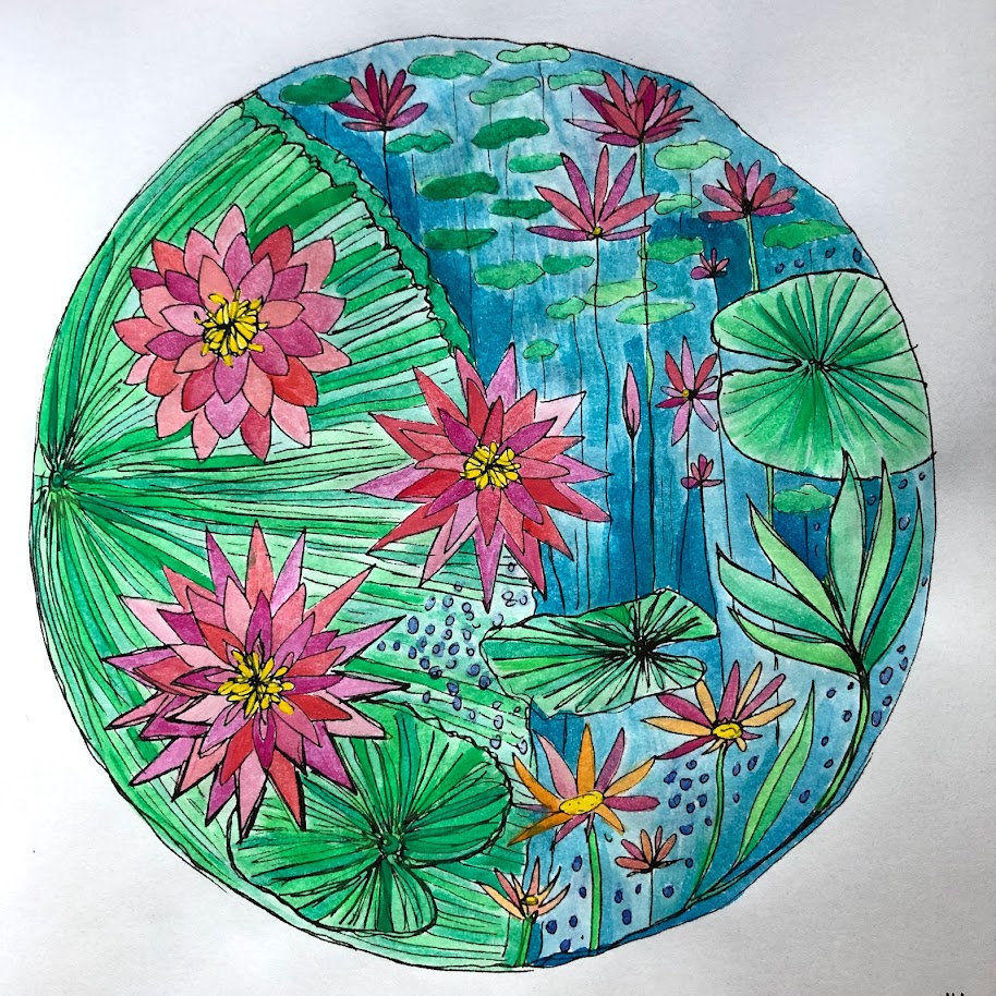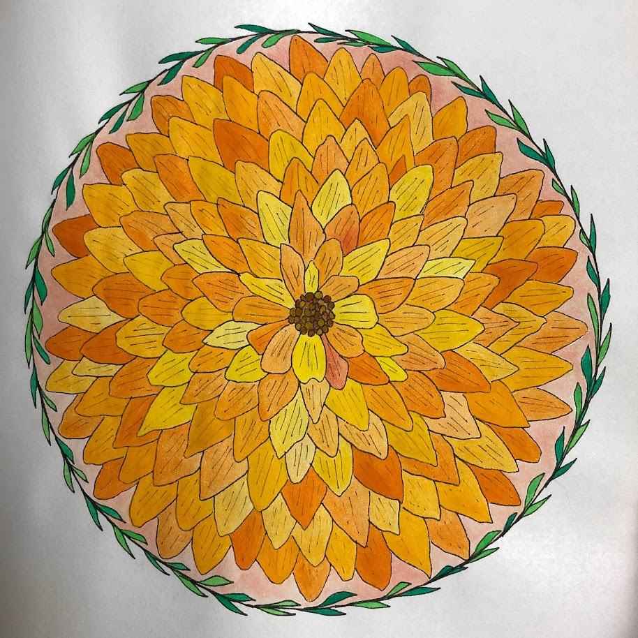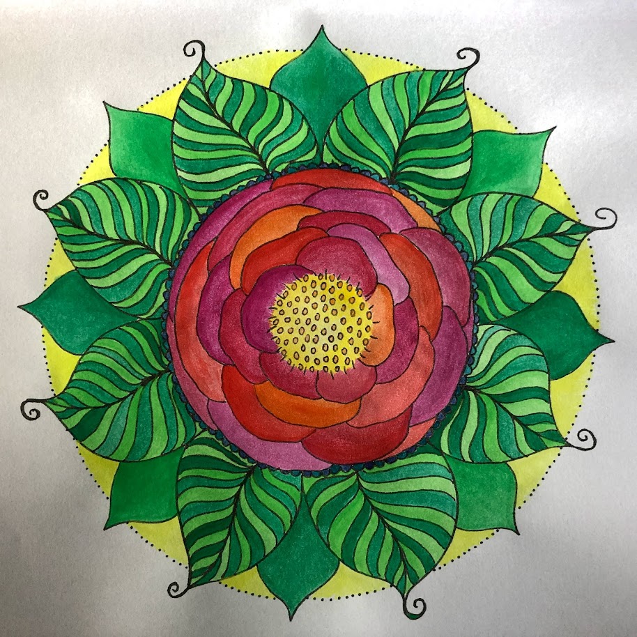 I started using watercolors to paint mandalas recently and am getting pretty good with the paintbrush. I really enjoy painting, I think more than using pencils! I still love colored pencils and sketching, but there’s something different and more “alive” feeling in my art when I paint.