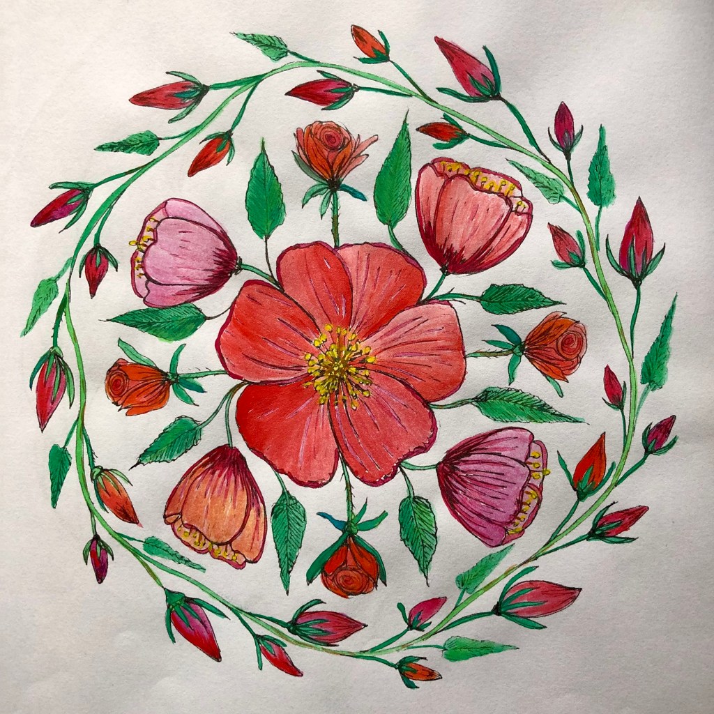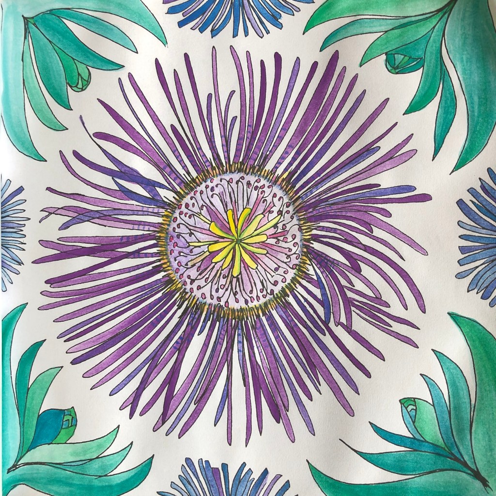 Here are a few botanical mandalas I’ve painted recently, the Passiflora one is my favorite so far.