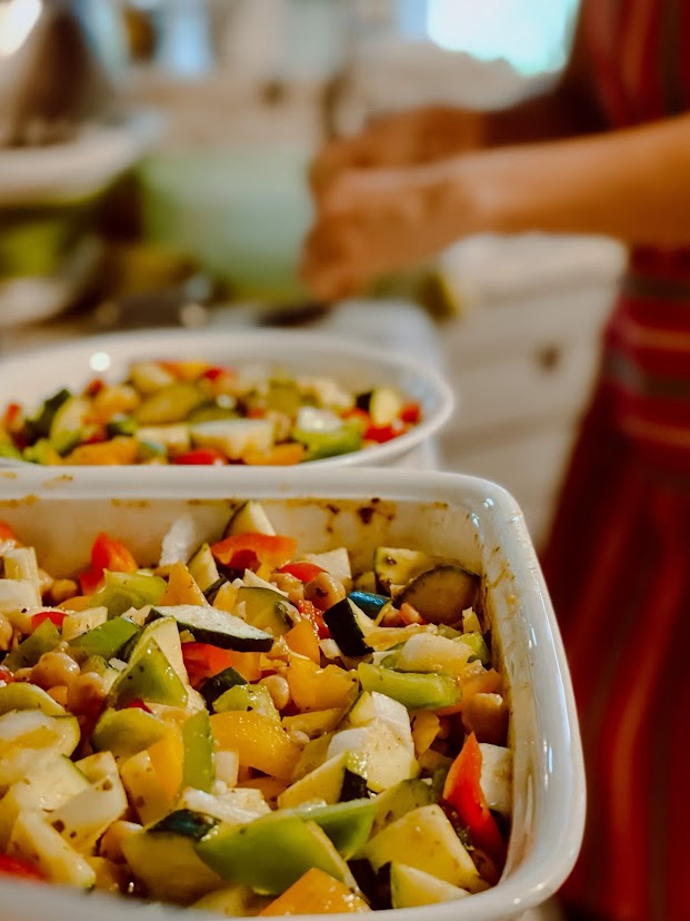 Start chopping up all your vegetables – zucchinis, bell peppers, onion, cherry tomatoes