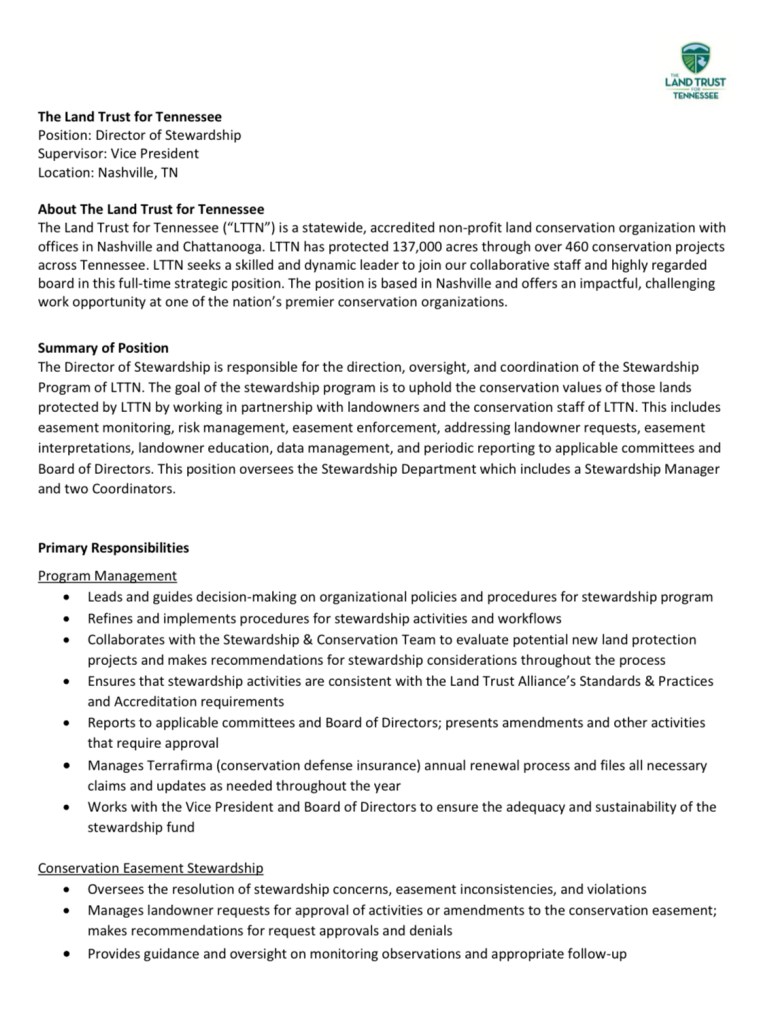 Director of Stewardship of the Land Trust for Tennessee