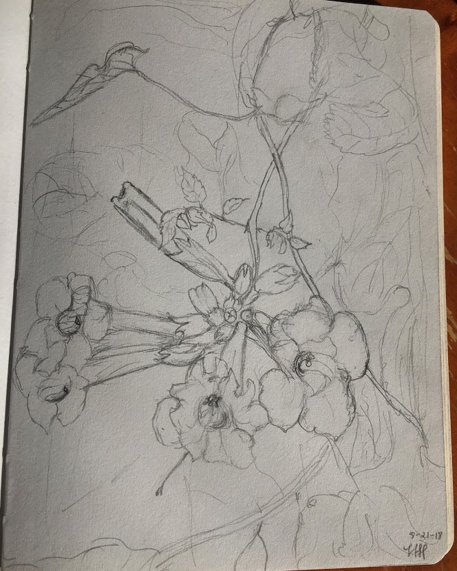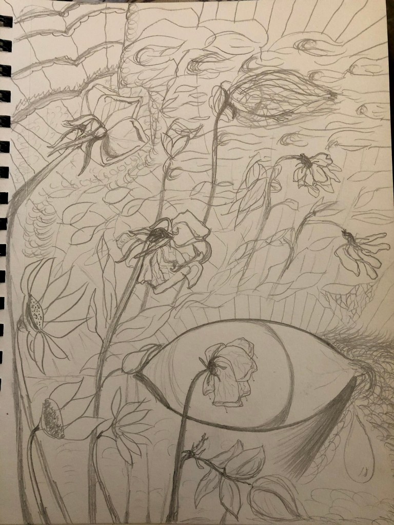 For this one, I stood outside with my sketch book, just looking at the flowers to draw them.