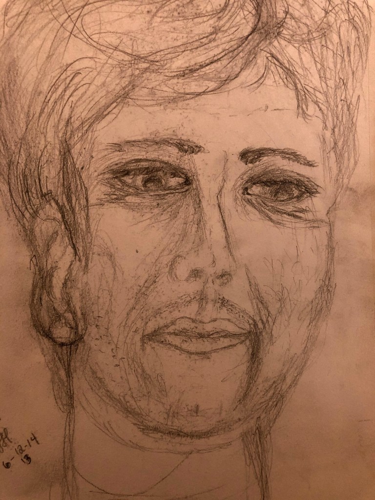I like to draw with pencil the most, but also enjoy using charcoal, conte crayon, pastels, water color, and acrylic paint. Sometimes I just like coloring in mandalas. Sketching peoples’ faces is my favorite, capturing an emotion – I like to look at the subject while I draw. Usually the urge comes in bursts and then I don’t draw for months again. I have moments where suddenly an image comes to mind and I have to draw it. I remember as a little girl I would draw a sun with a face on it so often. Both my parents are very artistic, my mom especially is an amazing painter of trees. It’s important to keep practicing and maintaining the skill – true talent doesn’t ever go away though. Just have to remember to let ourselves be creative!